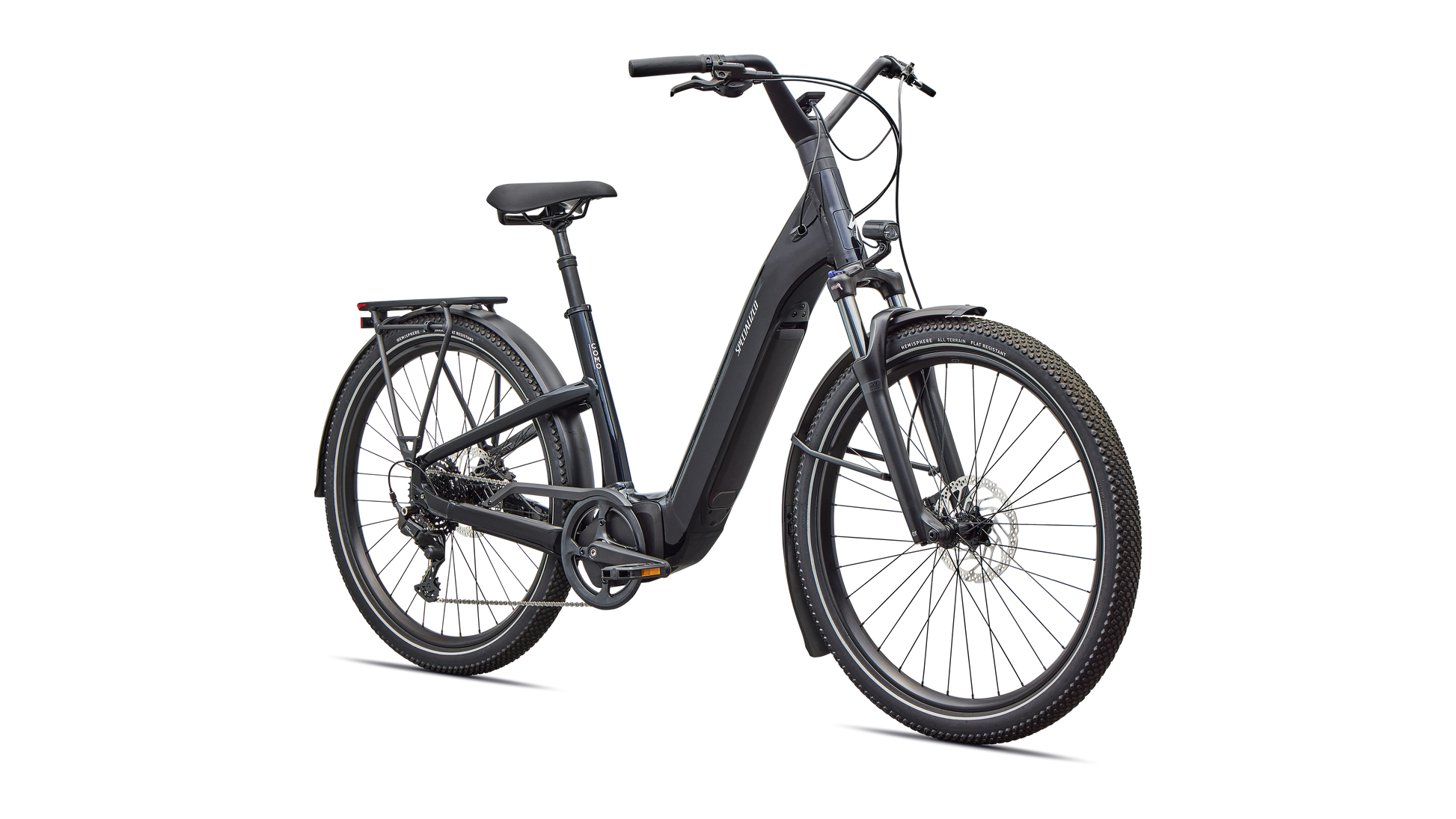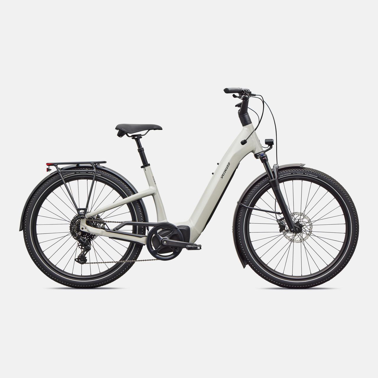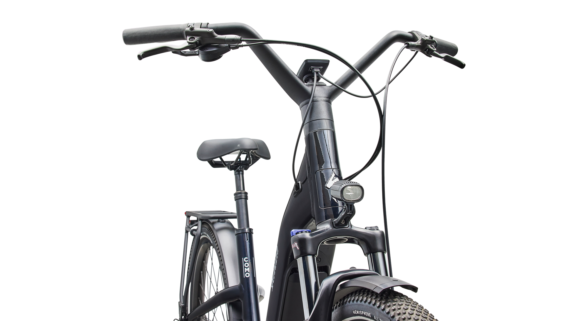 Como is a laid back e-bike with a clean look and upright rider position for convenient comfort and style. This full-power electric bike was designed for city streets and comes equipped with fenders, lights, and a low step-through frame, making it perfect for daily commutes or riding around town. Como offers the best combination of power, range, and usability while remaining incredibly versatile. You will never have to sacrifice comfort for style. You’ll find yourself making up errands to ride it again. COMFORTABLE: An upright body position and smooth handling are optimized for all-day riding comfort, confidence, and control. EASY TO USE: The Como's sleek design and step-through frame make the bike an approachable, functional everyday e-bike. POWERFUL: It’s you, only faster — it’s 4x You, to be precise. The Turbo Full Power system senses the force you apply to the pedals and naturally amplifies your effort by up to four times for an experience that makes getting up any hill or to any destination no sweat. Literally. SMOOTH: Stay comfortable in the saddle with an 80mm front suspension fork, higher volume tires, and a plush suspension seatpost that smooths harsh bumps. TURBO: The heart of the Como is its Turbo technology, the advanced and integrated electric bike system that delivers an unequaled combination of power, natural feel, anti-theft functions, training tips, and a full-function bike computer. SECURE: Como has anti-theft on lock. Thwart would-be bike thieves by disabling the motor with a press of a button so nobody can turn the motor back on without your personalized pin. For additional protection, the Como's battery locks in the bike, or can be easily taken with you. Beat it, bandits. SILENT: Turbo Full Power Motor provides smooth, quiet, and seamless amplification for a quiet ride on any terrain. The speed limit at which the motor will stop supporting may vary significantly by region and is based on local requirements. It may also affect range: a higher speed limit may result in less range. Turbo Full Power 2.0 motor and 710Wh battery offer an unparalleled riding experience, providing a smooth, seamless, and shockingly quiet amplification of your efforts, up to 28 mph. The integrated controller responds to your pedal inputs resulting in intuitive amplification of your efforts with an incredibly natural feel.