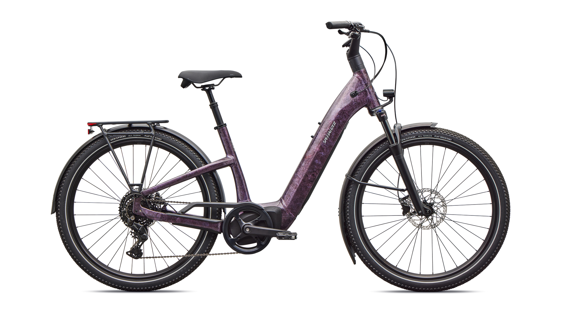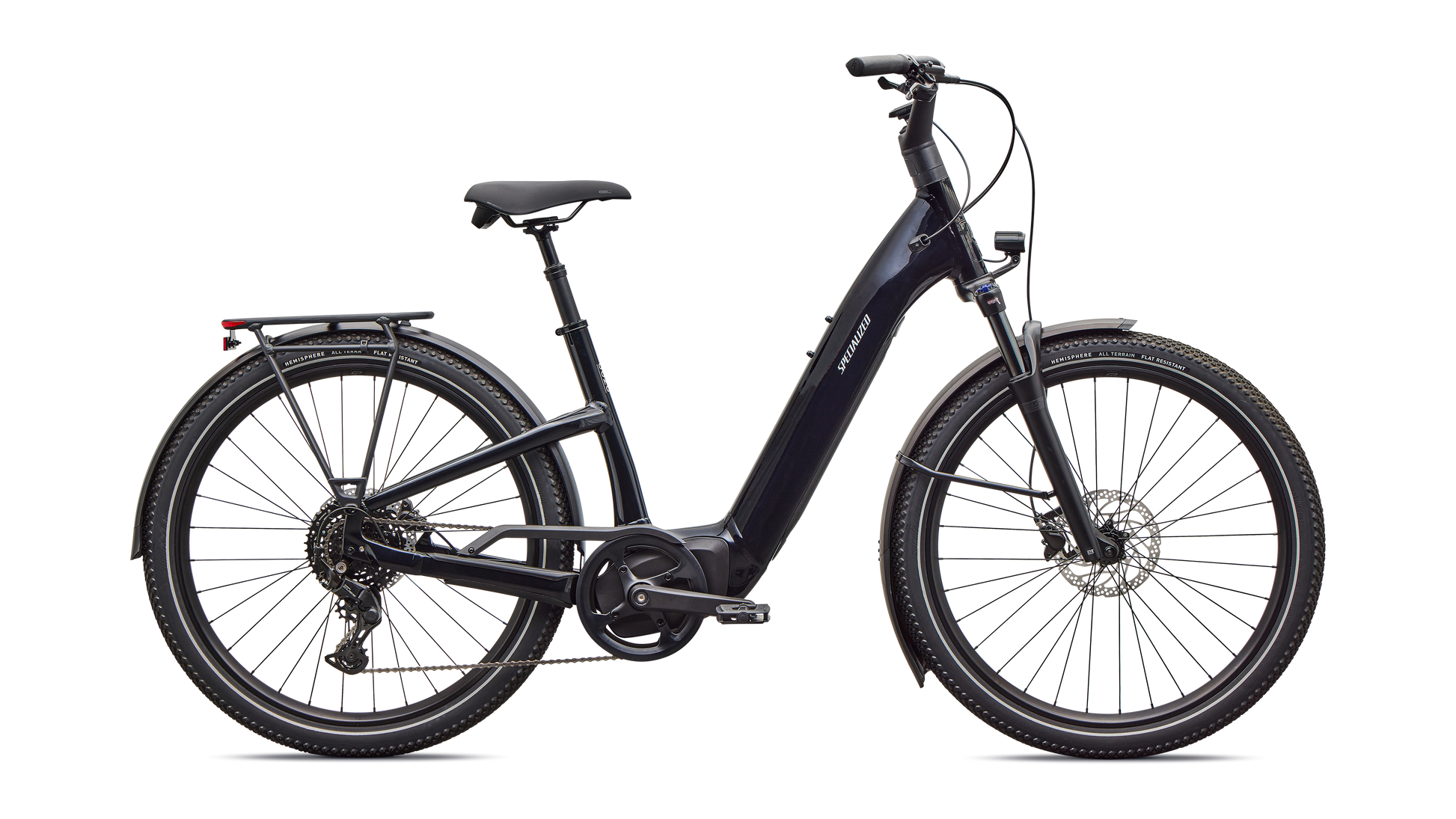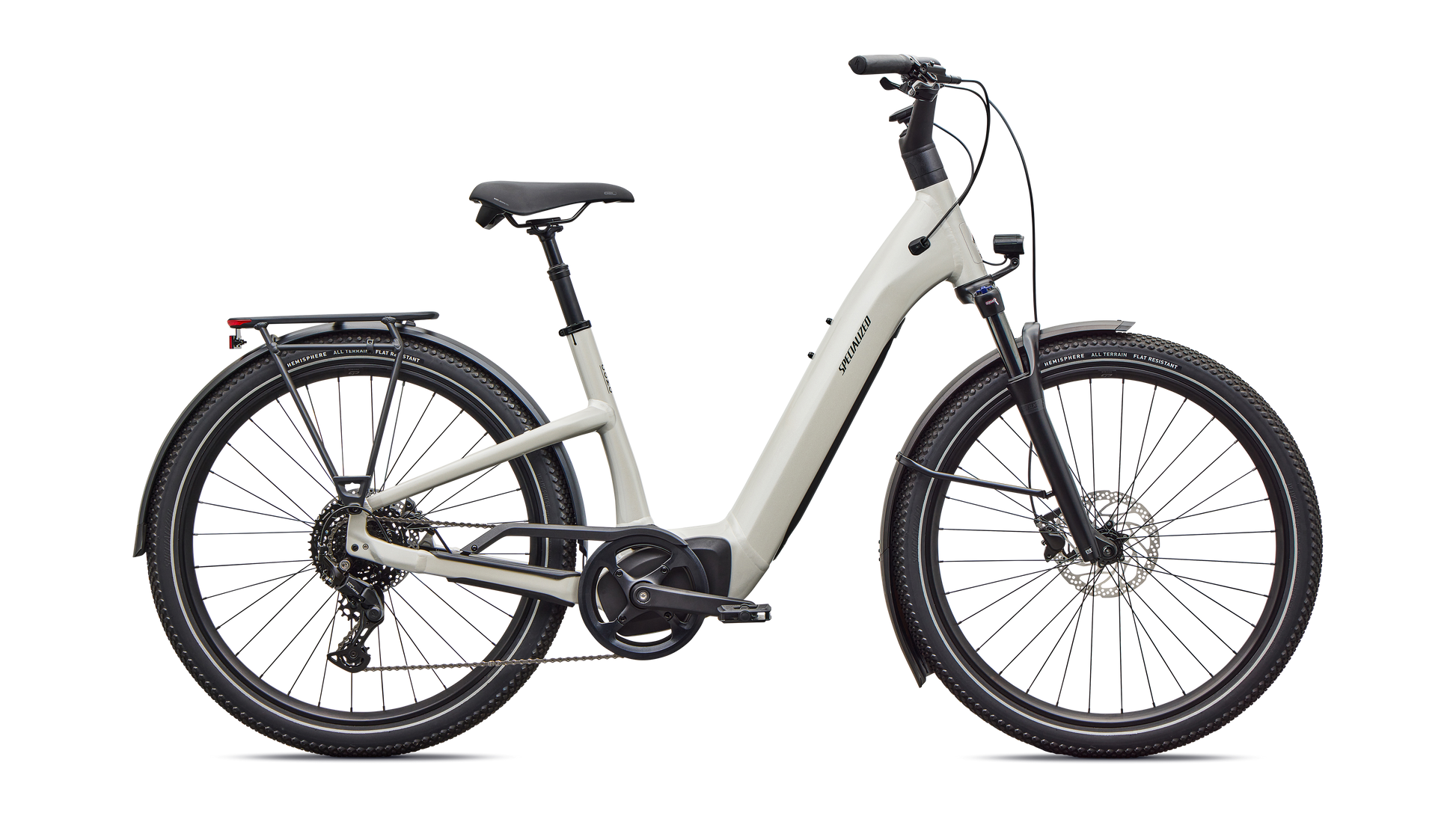 Como is a laid back e-bike with a clean look and upright rider position for convenient comfort and style. This full-power electric bike was designed for city streets and comes equipped with fenders, lights, and a low step-through frame, making it perfect for daily commutes or riding around town. Como offers the best combination of power, range, and usability while remaining incredibly versatile. You will never have to sacrifice comfort for style. You’ll find yourself making up errands to ride it again. COMFORTABLE: An upright body position and smooth handling are optimized for all-day riding comfort, confidence, and control. EASY TO USE: The Como's sleek design and step-through frame make the bike an approachable, functional everyday e-bike. POWERFUL: It’s you, only faster — it’s 4x You, to be precise. The Turbo Full Power system senses the force you apply to the pedals and naturally amplifies your effort by up to four times for an experience that makes getting up any hill or to any destination no sweat. Literally. SMOOTH: Stay comfortable in the saddle with an 80mm front suspension fork, higher volume tires, and a plush suspension seatpost that smooths harsh bumps. TURBO: The heart of the Como is its Turbo technology, the advanced and integrated electric bike system that delivers an unequaled combination of power, natural feel, anti-theft functions, training tips, and a full-function bike computer. SECURE: Como has anti-theft on lock. Thwart would-be bike thieves by disabling the motor with a press of a button so nobody can turn the motor back on without your personalized pin. For additional protection, the Como's battery locks in the bike, or can be easily taken with you. Beat it, bandits. SILENT: Turbo Full Power Motor provides smooth, quiet, and seamless amplification for a quiet ride on any terrain. The speed limit at which the motor will stop supporting may vary significantly by region and is based on local requirements. It may also affect range: a higher speed limit may result in less range. Turbo Full Power 2.0 motor and 710Wh battery offer an unparalleled riding experience, providing a smooth, seamless, and shockingly quiet amplification of your efforts, up to 28 mph. The integrated controller responds to your pedal inputs resulting in intuitive amplification of your efforts with an incredibly natural feel.