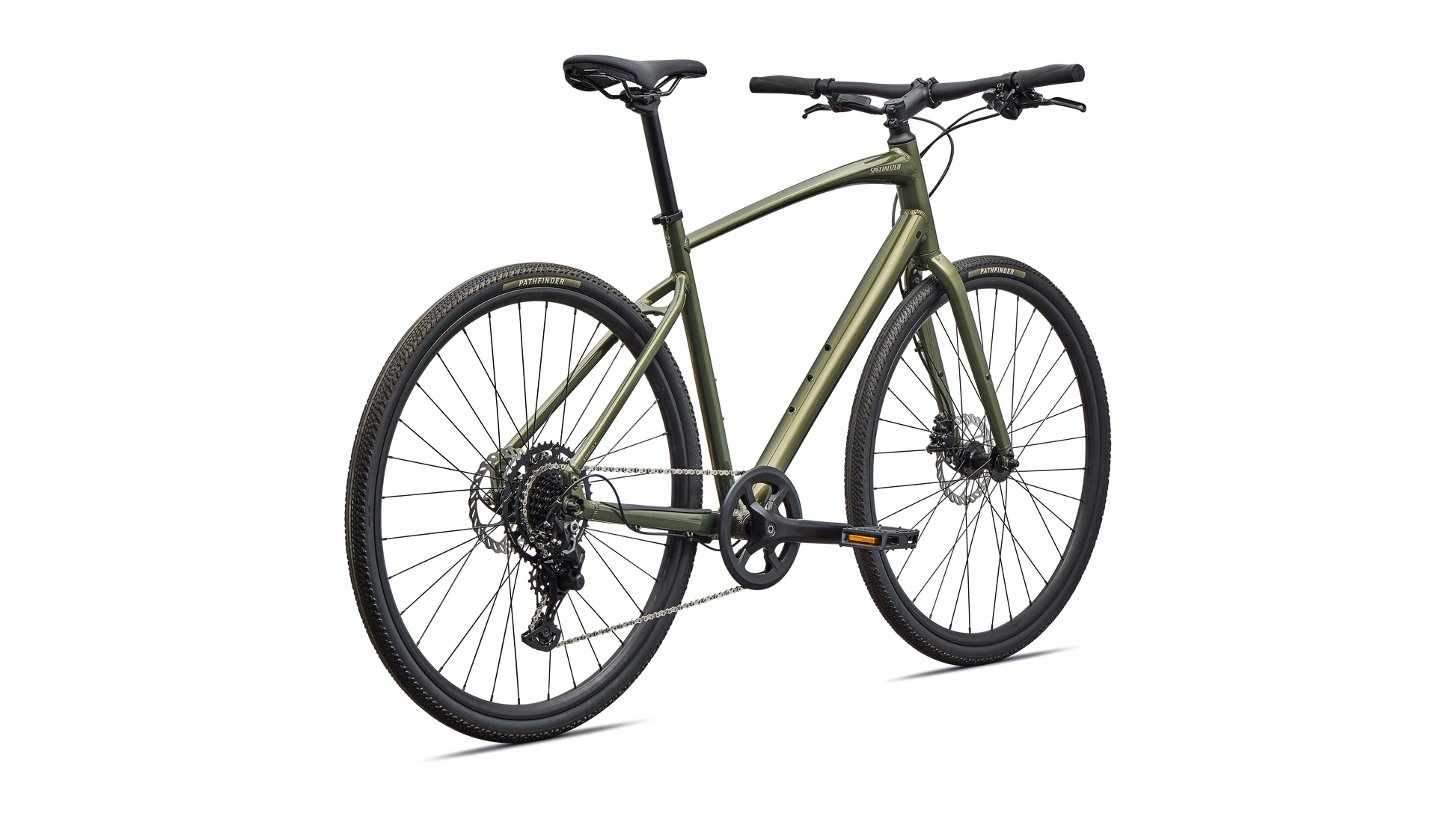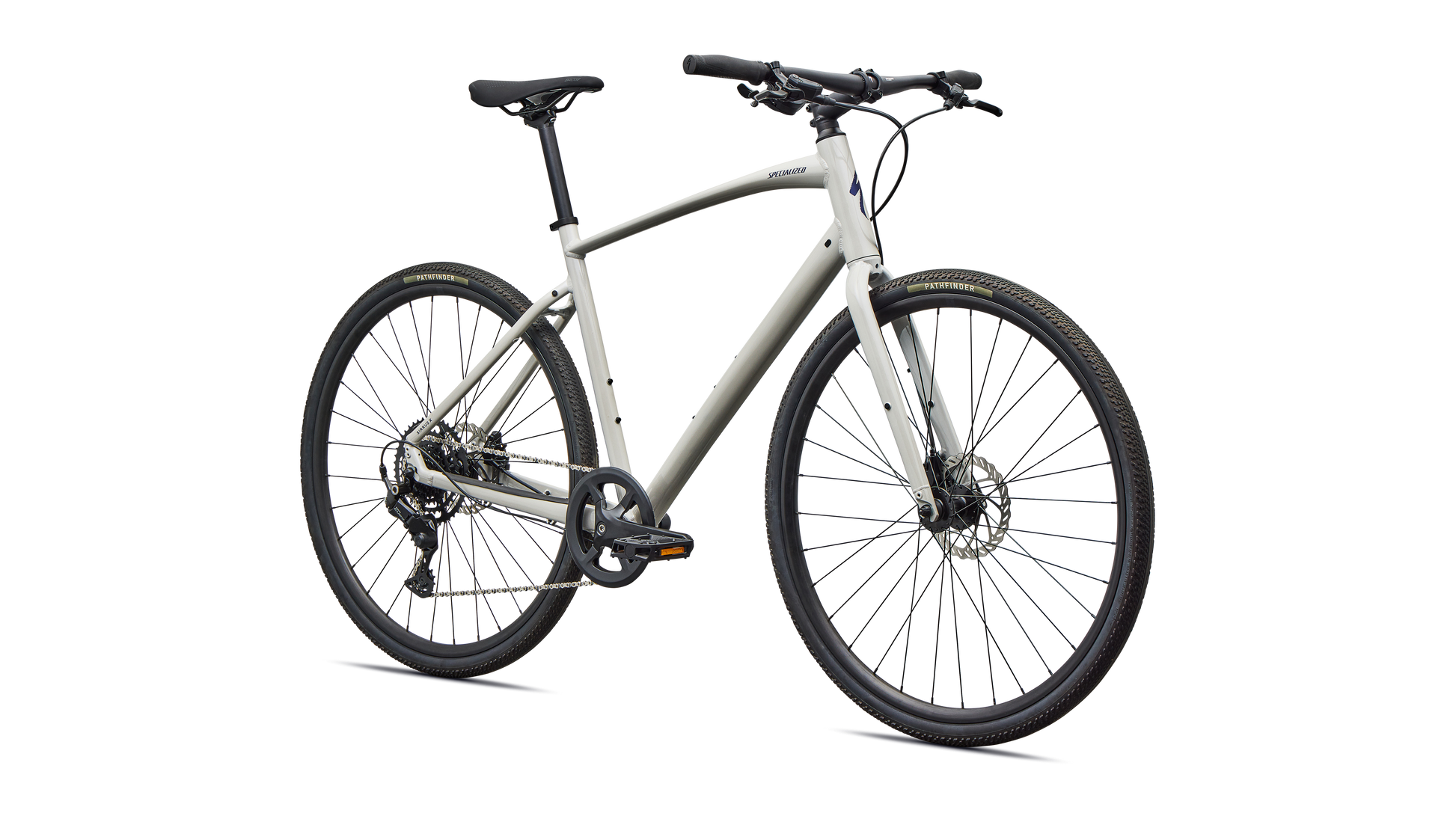 Specialized A1 Premium Aluminum, Fitness Geometry, butted tubing, internal cable routing, flat-mount disc, quick-release, Plug + Play rack/fender mounts