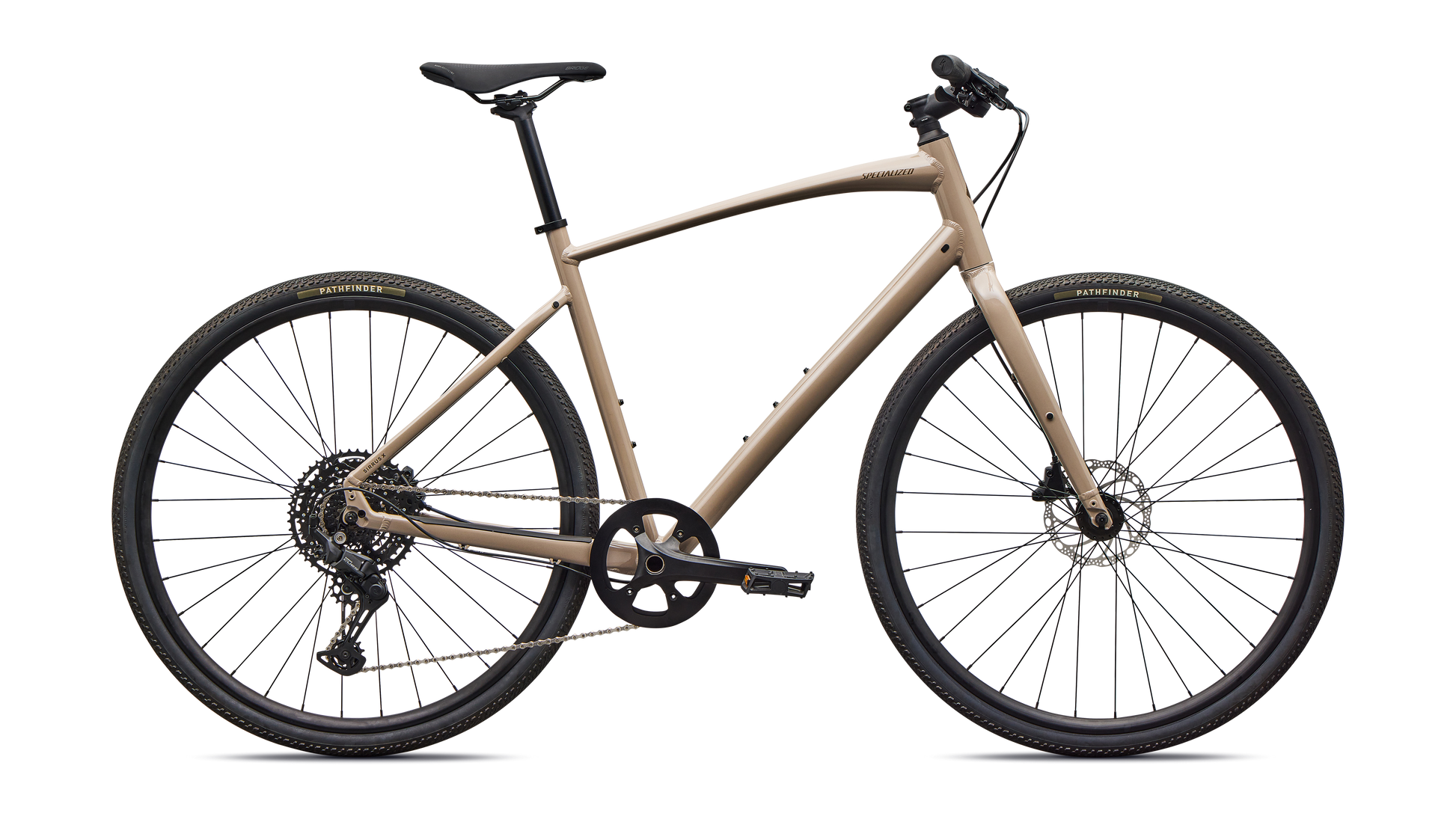 Specialized A1 Premium Aluminum, Fitness Geometry, butted tubing, internal cable routing, flat-mount disc, quick-release, Plug + Play rack/fender mounts