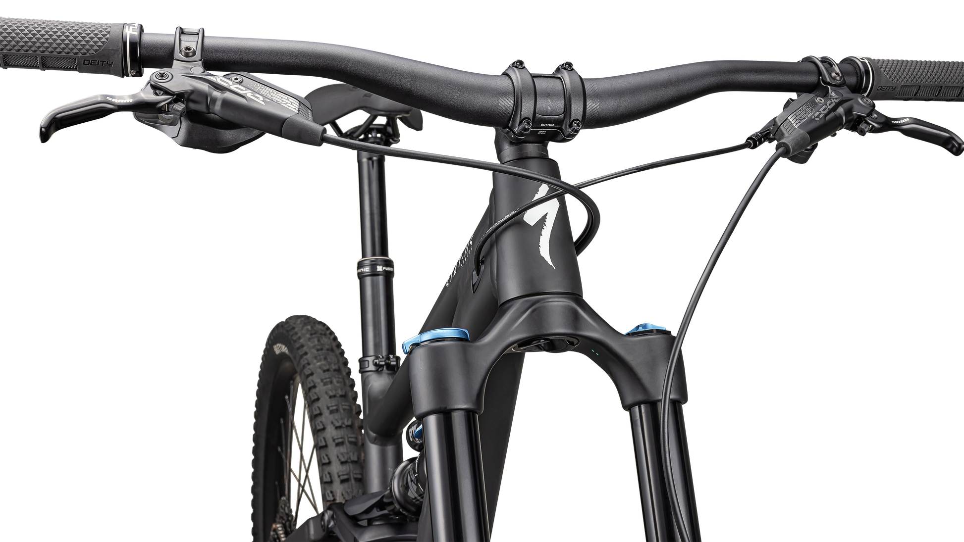 X-Fusion Manic, infinite adjustable, two-bolt head, bottom mount cable routing, remote SLR LE lever, 34.9mm, 100mm