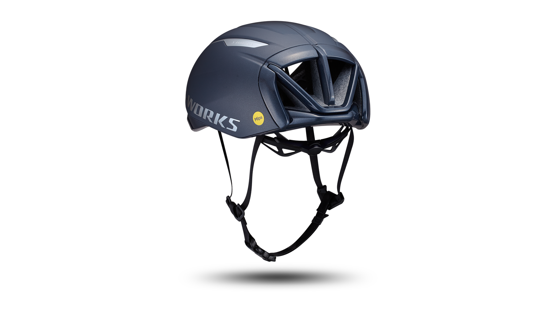 The most aero road helmet in the peloton now breathes better. The S-Works Evade 3 was reinvented from the inside out to cool better, making it the fastest choice for more stages. Through extensive Computational Fluid Dynamics and Win Tunnel testing, we created a rear “diffuser” that helps minimize drag and improve ventilation. The diffuser helps optimize aero performance by allowing air to release easier and improves ventilation by drawing 10% more air through the helmet at a given speed. The Occipital Base Adjustment optimizes comfort by personalizing fit to individual head shape and helmet angle can be adjusted for compatibility with glasses. An adjustable Tri-Fix web system gives riders added comfort with updated, thinner 10mm webbing that minimizes strap noise. Our ultralight and supremely comfortable MIPS Node Air technology is integrated directly into the helmet padding, with a sleek low friction layer designed to dissipate rotational forces. With Specialized’s proprietary development work, we added perforations to maximize breathability, performance, comfort, and weight savings. For helmets sold in the U.S. and Canada: Complies with U.S. CPSC Safety Standard for Bicycle Helmets for Persons Age 5 and Older. Enlarged front vents help increase ventilation.
