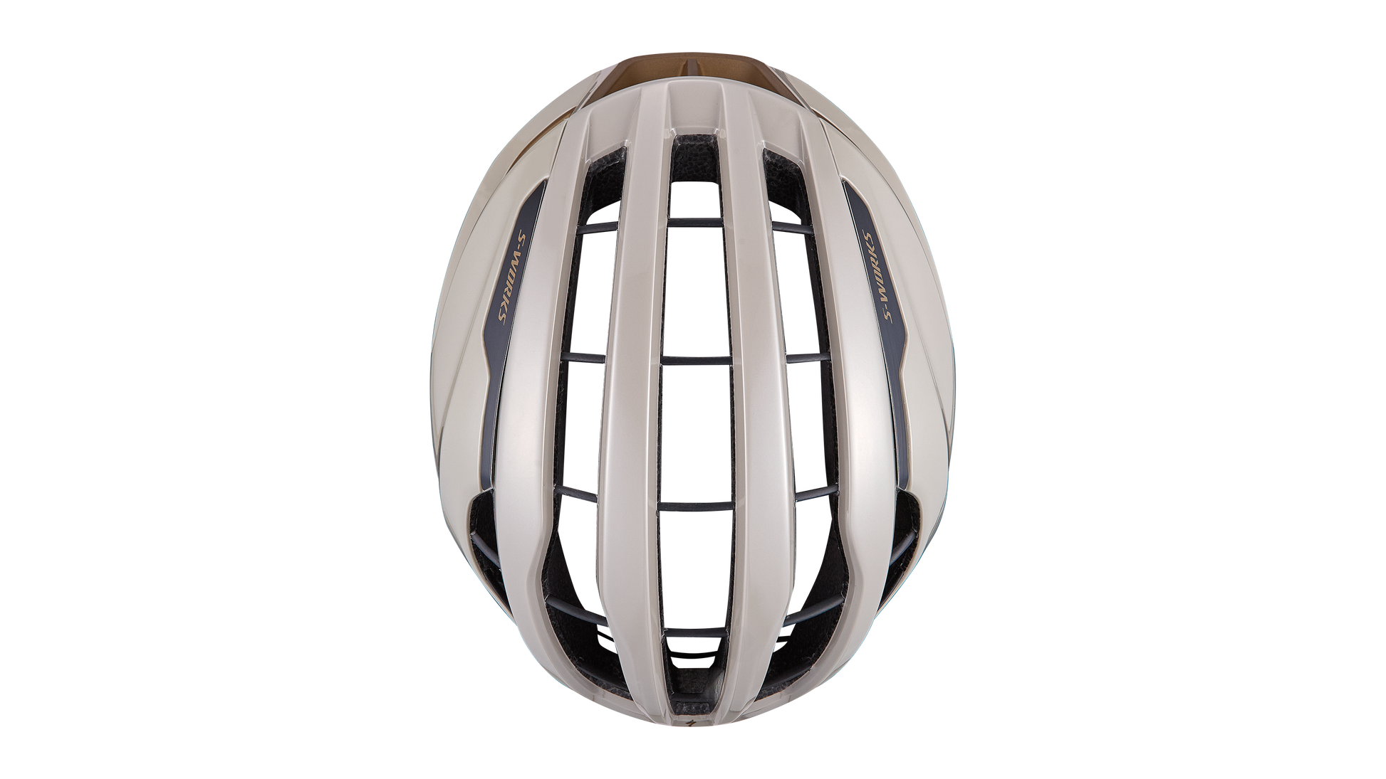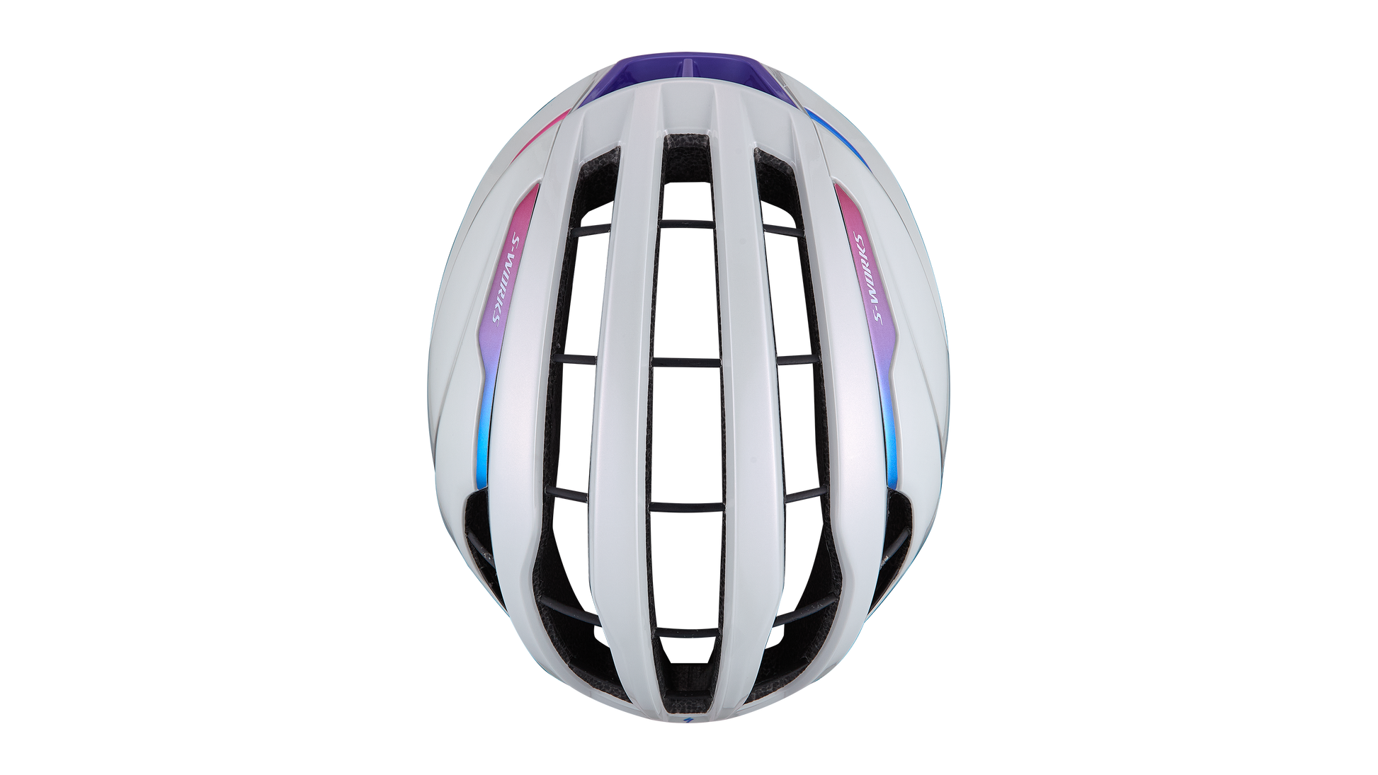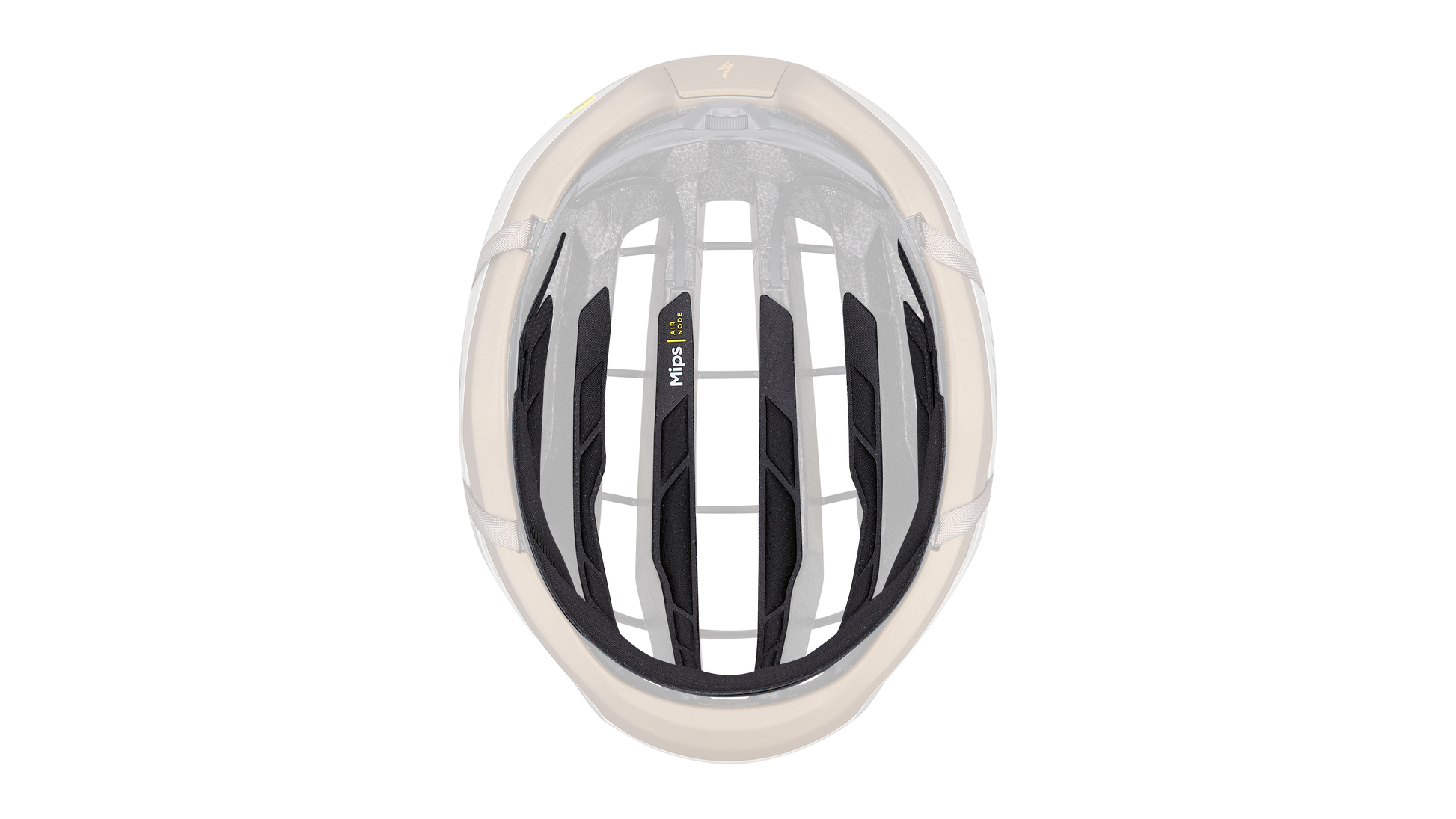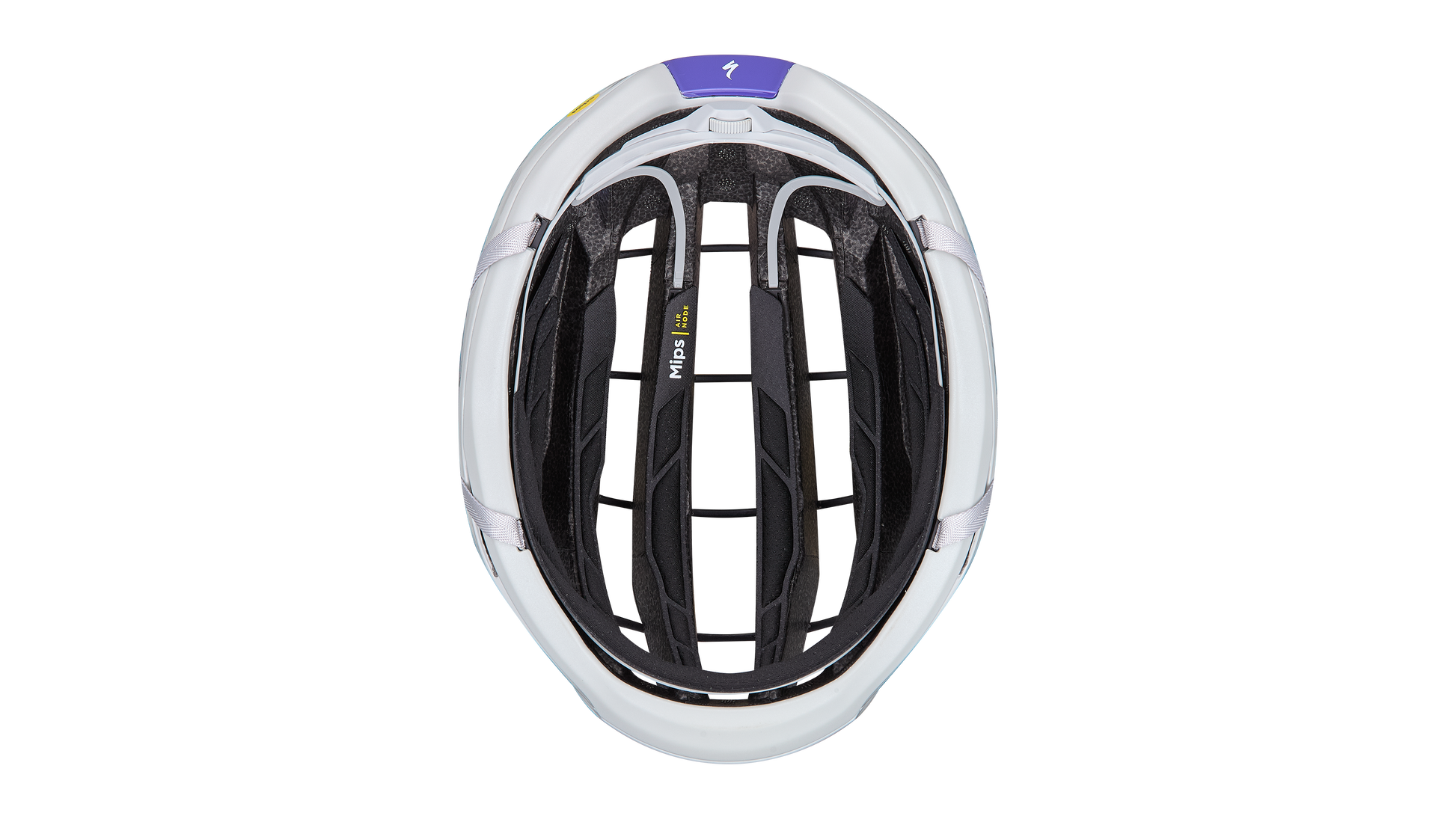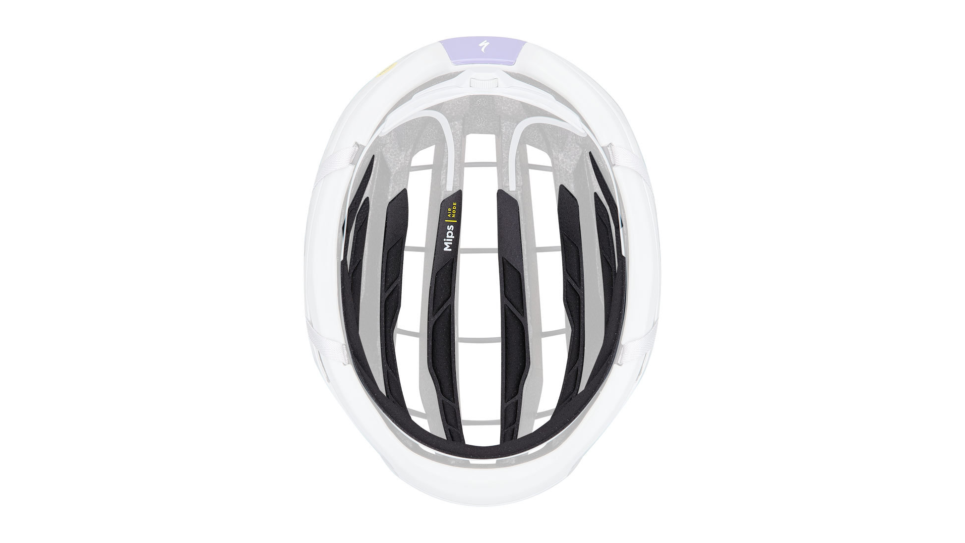 The S-Works Prevail 3 helmet is perfect for riders who value the comfort and thermoregulation benefits that superior ventilation delivers. It is the ultimate all-around helmet that excels in hot conditions, strenuous climbs, and mountainous stages. With a never-ending quest to push the limits of ventilation, we eliminated air-blocking foam “bridges” from the center, effectively creating thru-air channels that increase the surface area of ventilation by 24.5% compared to the S-Works Prevail II Vent helmet. The all-new S-Works Prevail 3 has the most ventilation area of any helmet we have ever made. When a helmet is impacted, its job is to dissipate the energy of the impact. The conventional approach to helmet design is that more foam (EPS) means better energy management. We re-wrote the book on cycling helmet design by innovating beyond foam. Woven aramid “cables” traverse the helmet and are anchored to carbon fiber side panels. Upon impact, the AirCage technology* works as a suspension bridge and is designed to distribute localized forces throughout the helmet. The Occipital Base Adjustment optimizes comfort by personalizing fit to individual head shape and helmet angle can be adjusted for compatibility with glasses. An adjustable Tri-Fix web system gives riders added comfort with updated, thinner 10mm webbing that minimizes strap noise. And the ultralight Mindset micro-dial fit system with height adjustability has been updated for improved grip and reaction for easy on-the-go fit. Our ultralight and supremely comfortable MIPS Node Air technology is integrated directly into the helmet padding, with a sleek low friction layer designed to dissipate rotational forces. With Specialized’s proprietary development work, we added perforations to maximize breathability, performance, comfort, and weight savings. For helmets sold in the U.S. and Canada: Complies with U.S. CPSC Safety Standard for Bicycle Helmets for Persons Age 5 and Older. AirCage innovation increases airflow.