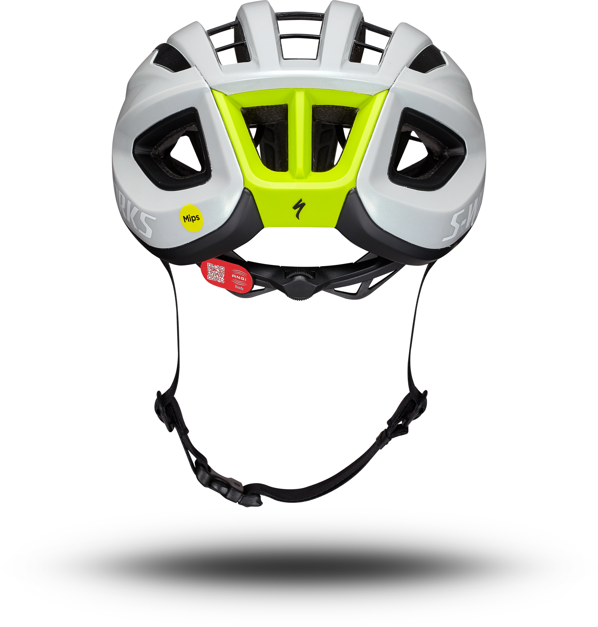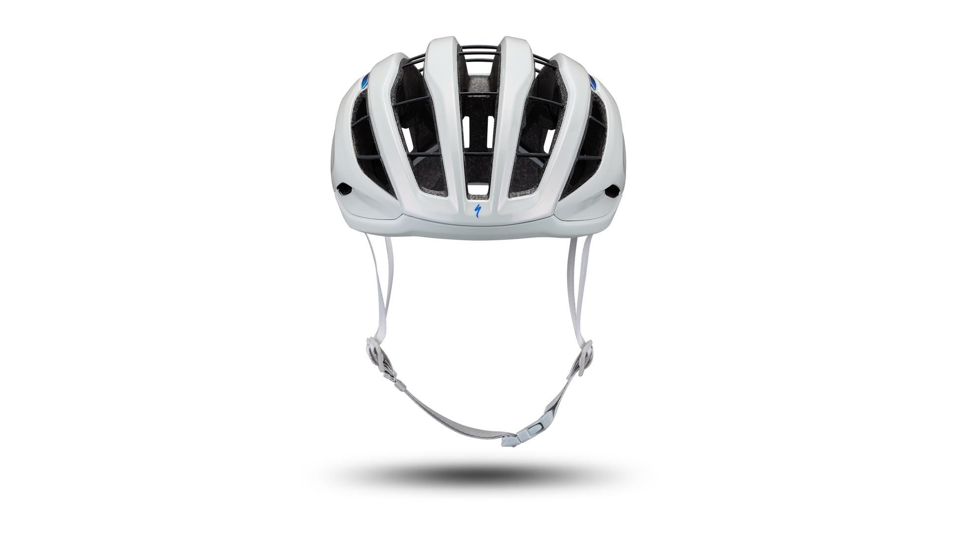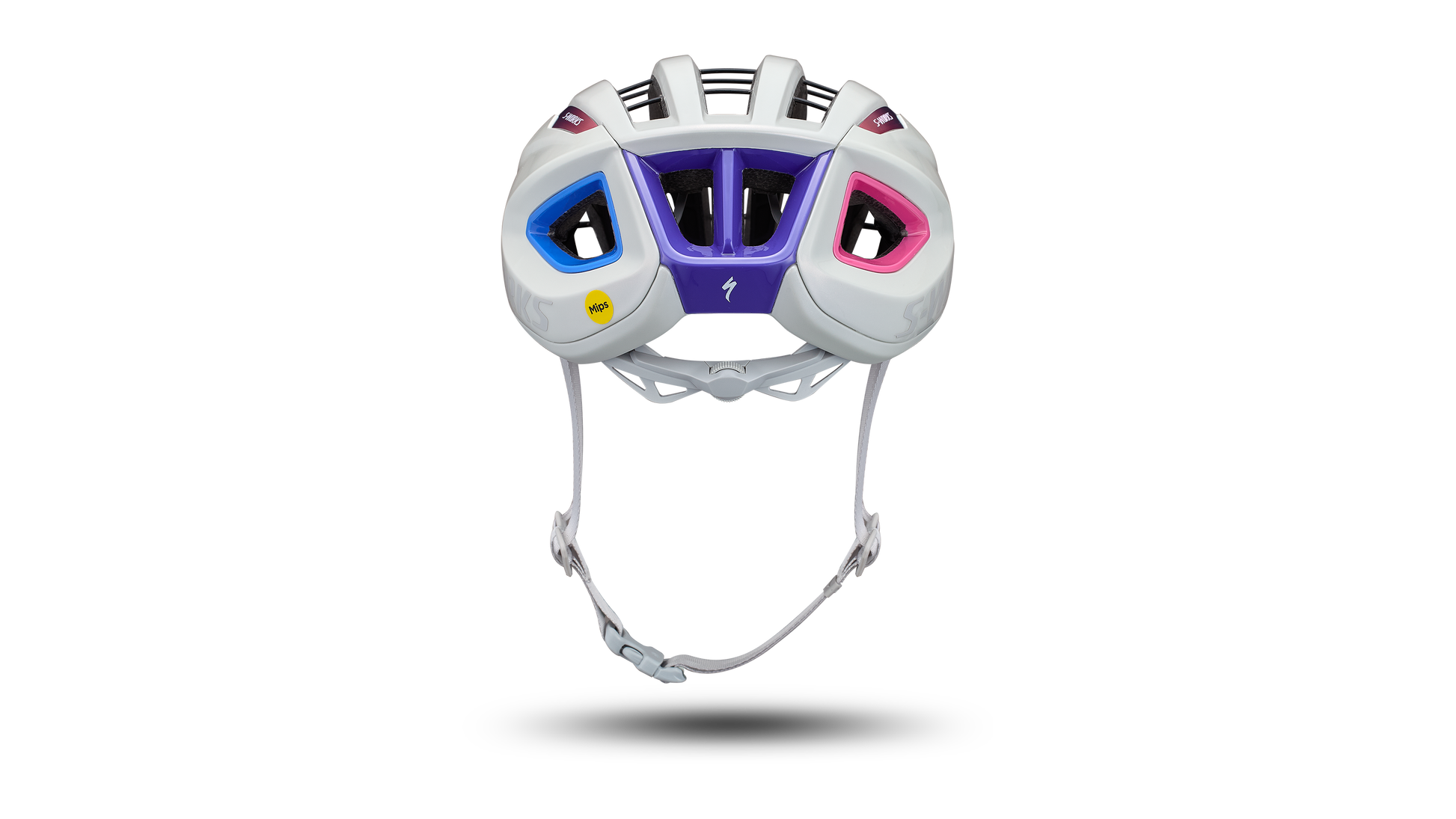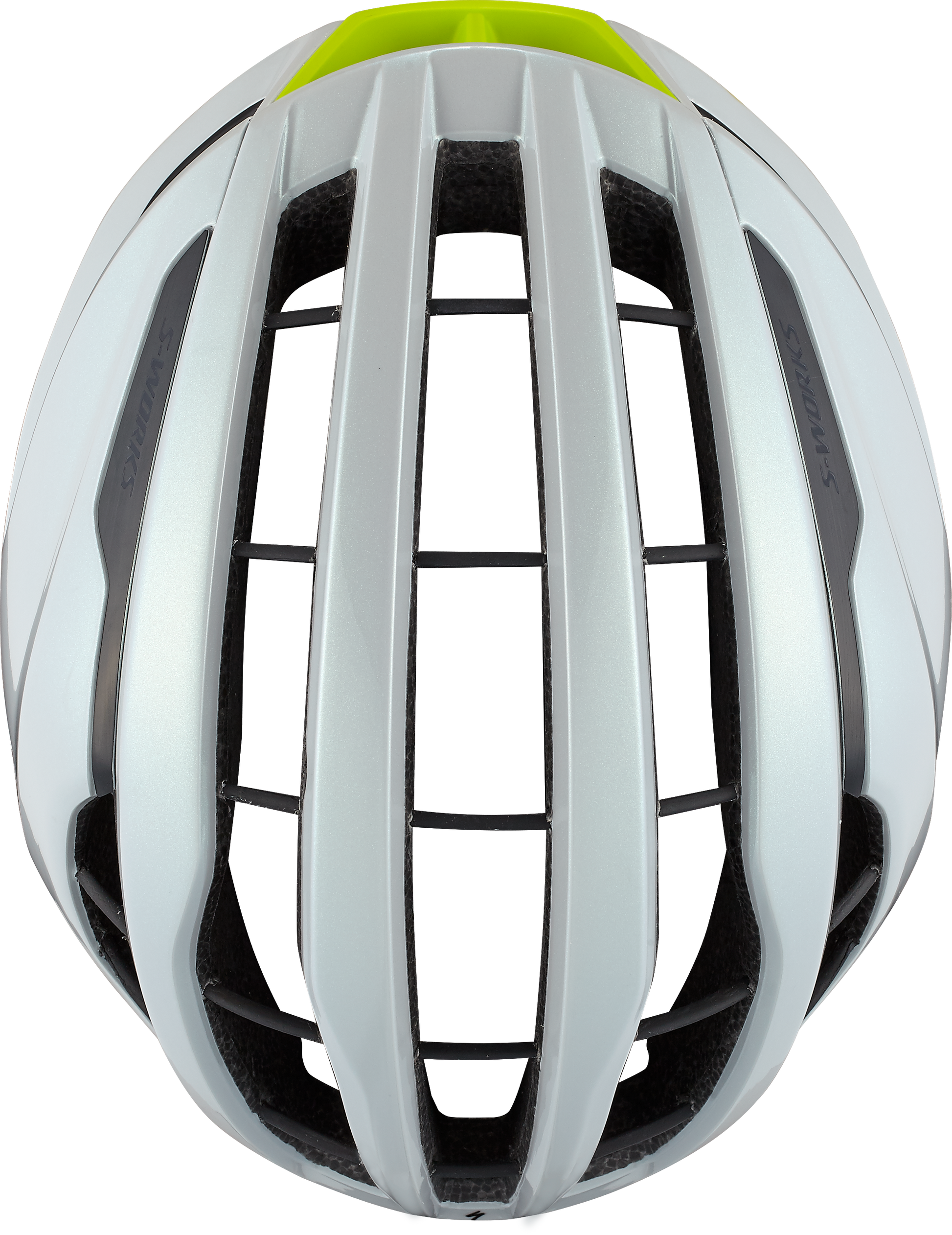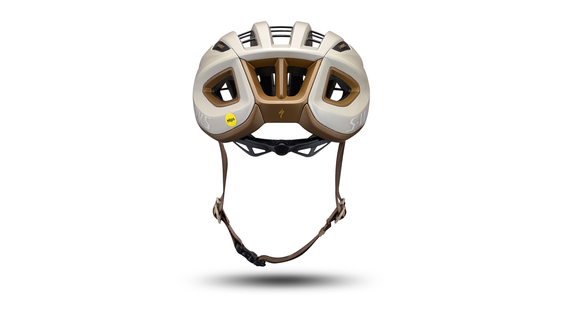The S-Works Prevail 3 helmet is perfect for riders who value the comfort and thermoregulation benefits that superior ventilation delivers. It is the ultimate all-around helmet that excels in hot conditions, strenuous climbs, and mountainous stages. With a never-ending quest to push the limits of ventilation, we eliminated air-blocking foam “bridges” from the center, effectively creating thru-air channels that increase the surface area of ventilation by 24.5% compared to the S-Works Prevail II Vent helmet. The all-new S-Works Prevail 3 has the most ventilation area of any helmet we have ever made. When a helmet is impacted, its job is to dissipate the energy of the impact. The conventional approach to helmet design is that more foam (EPS) means better energy management. We re-wrote the book on cycling helmet design by innovating beyond foam. Woven aramid “cables” traverse the helmet and are anchored to carbon fiber side panels. Upon impact, the AirCage technology* works as a suspension bridge and is designed to distribute localized forces throughout the helmet. The Occipital Base Adjustment optimizes comfort by personalizing fit to individual head shape and helmet angle can be adjusted for compatibility with glasses. An adjustable Tri-Fix web system gives riders added comfort with updated, thinner 10mm webbing that minimizes strap noise. And the ultralight Mindset micro-dial fit system with height adjustability has been updated for improved grip and reaction for easy on-the-go fit. Our ultralight and supremely comfortable MIPS Node Air technology is integrated directly into the helmet padding, with a sleek low friction layer designed to dissipate rotational forces. With Specialized’s proprietary development work, we added perforations to maximize breathability, performance, comfort, and weight savings. For helmets sold in the U.S. and Canada: Complies with U.S. CPSC Safety Standard for Bicycle Helmets for Persons Age 5 and Older. AirCage innovation increases airflow.