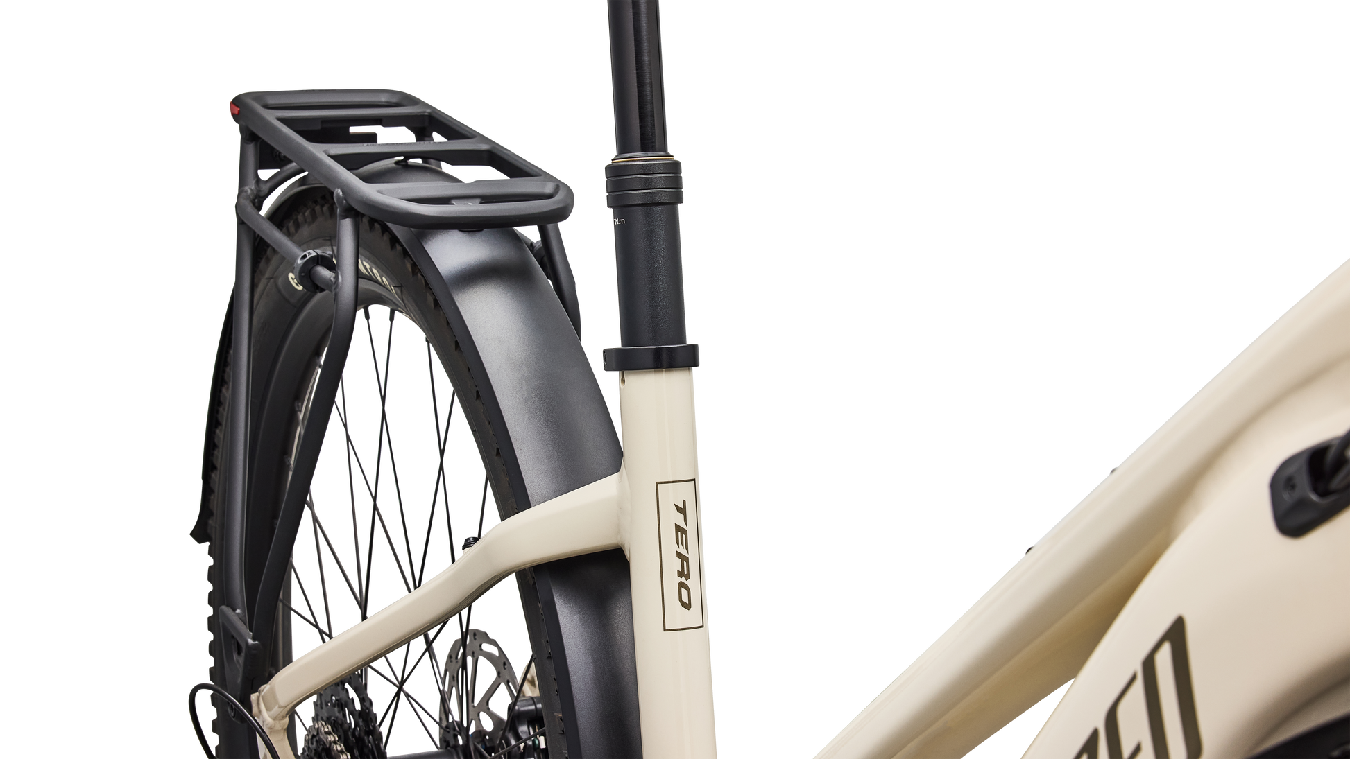 The Turbo Tero means one thing: you're going to need a bigger map. With ride anywhere range, this adventure-ready suspension electric bike is our go-anywhere, over anything, with everything vehicle. Plus, with enough storage space to pack in a few backcountry comforts, you'll discover new adventures easier than ever. The only question left to ask is where to? Looking for a commuter you can take touring? A touring bike that can haul cargo? This is it. In a word, the Tero is unstoppable. Off-road capable wheels and tires, powerful hydraulic disc brakes, and a full-on suspension fork can transform every ride into an adventure, whether you’re on dirt roads or cruising through the concrete jungle. POWERFUL: It’s you, only faster. The Turbo Full Power system senses the force you apply to the pedals and amplifies your effort up to four times for an experience that makes getting up any hill or to any destination no sweat. Literally. COMFORTABLE AND CONFIDENT: Both body position and handling are optimized to deliver everything the rider needs: comfort, confidence, and control. Reign in your speed with hydraulic disc brakes and stay in control with larger tires that offer more traction for turning and stopping on any terrain. TURBO: The heart of the Tero is its Turbo technology. The advanced and integrated electric bike system delivers an unequaled combination of power, natural feel, anti-theft functions, training tips, a full-function bike computer, and more. SECURE: Tero has anti-theft on lock. Thwart would-be bike thieves by disabling the motor with a press of a button so nobody can turn the motor back on without your personalized pin. For additional protection, lock the battery in the bike or take it with you to make bike thieves miserable. SILENT: Turbo Full Power Motor provides smooth, quiet, and seamless amplification for a quiet ride on any terrain. The speed limit at which the motor will stop supporting may vary significantly by region and is based on local requirements. It may also affect range: a higher speed limit may result in less range. Turbo Full Power 2.0 Motor and 710 Wh Battery- Integrated into the aluminum frame of the Tero 4.0, they effectively quadruple your own power, cranking out ample wattage to make short work of the steepest climbs and providing enough extra muscle to let you carry a mountain of adventure gear, groceries, kids and daydreams without breaking a sweat. It’s you, only faster. But what really sets this motor apart from the rest is how efficiently and seamlessly it melds with your own efforts.
