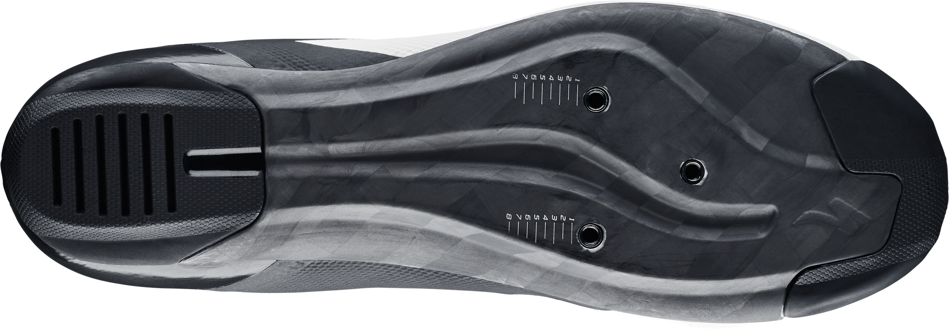 Carbon sole with a 7.0 Stiffness Index is engineered to be moderately stiff, yet light with a rubber heel and toe for off-the-bike traction.