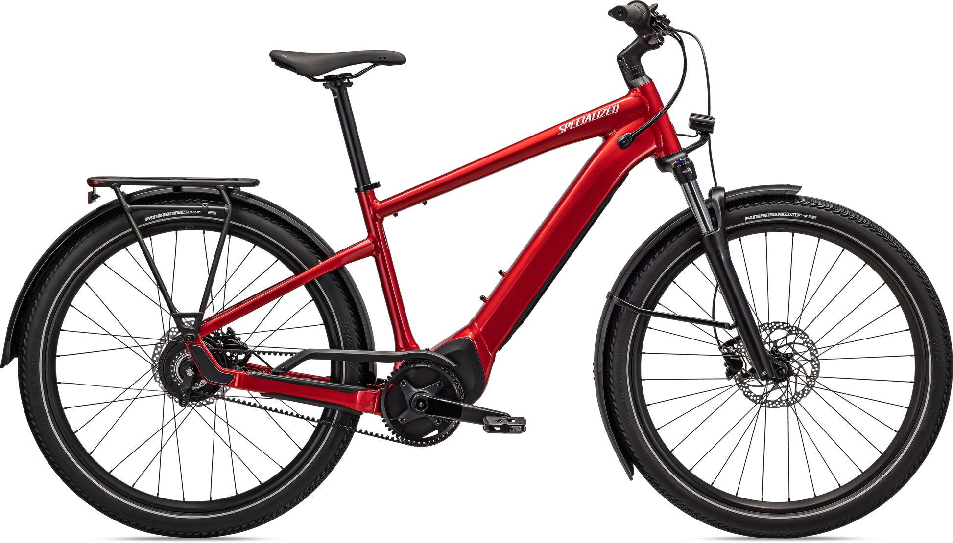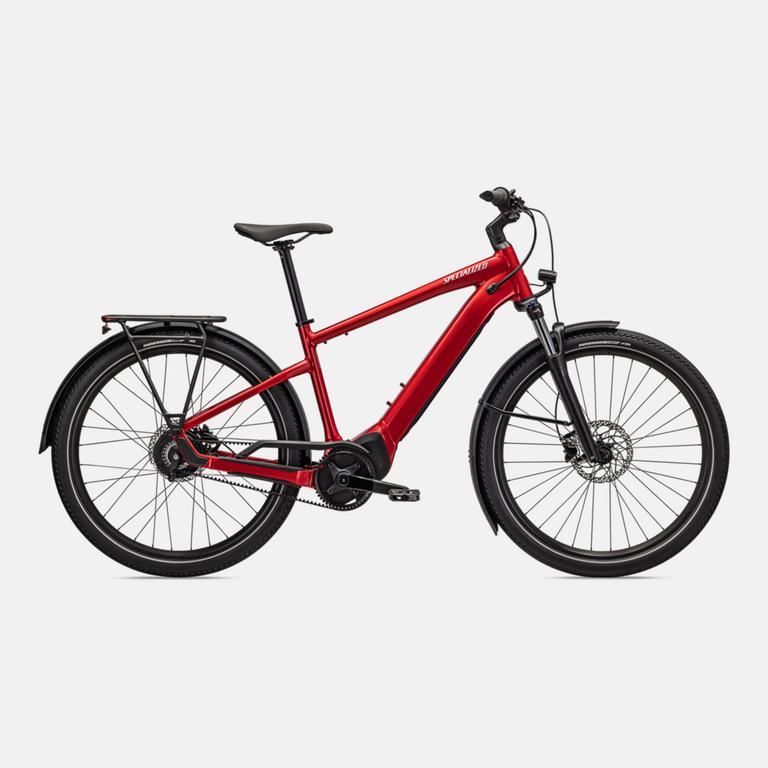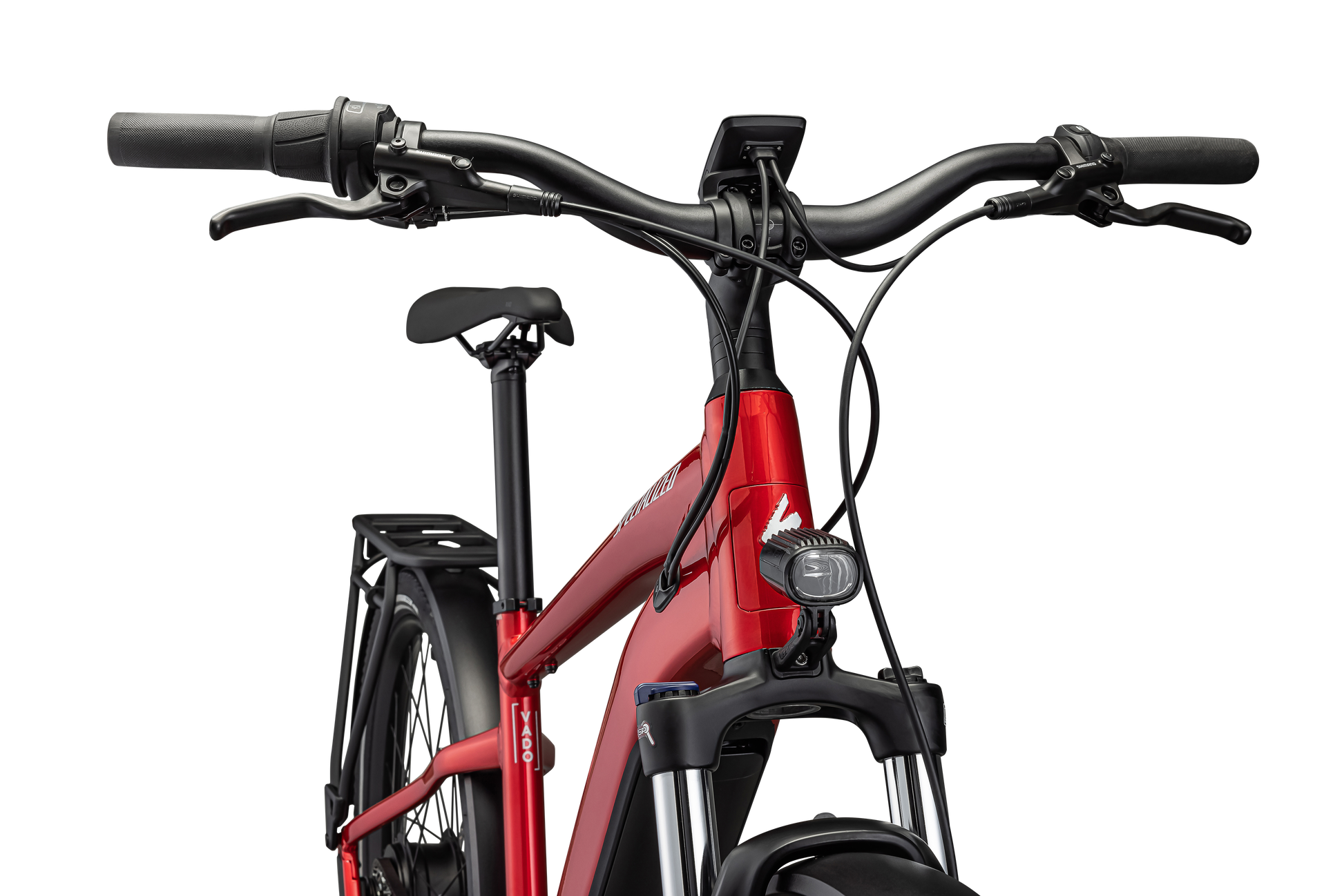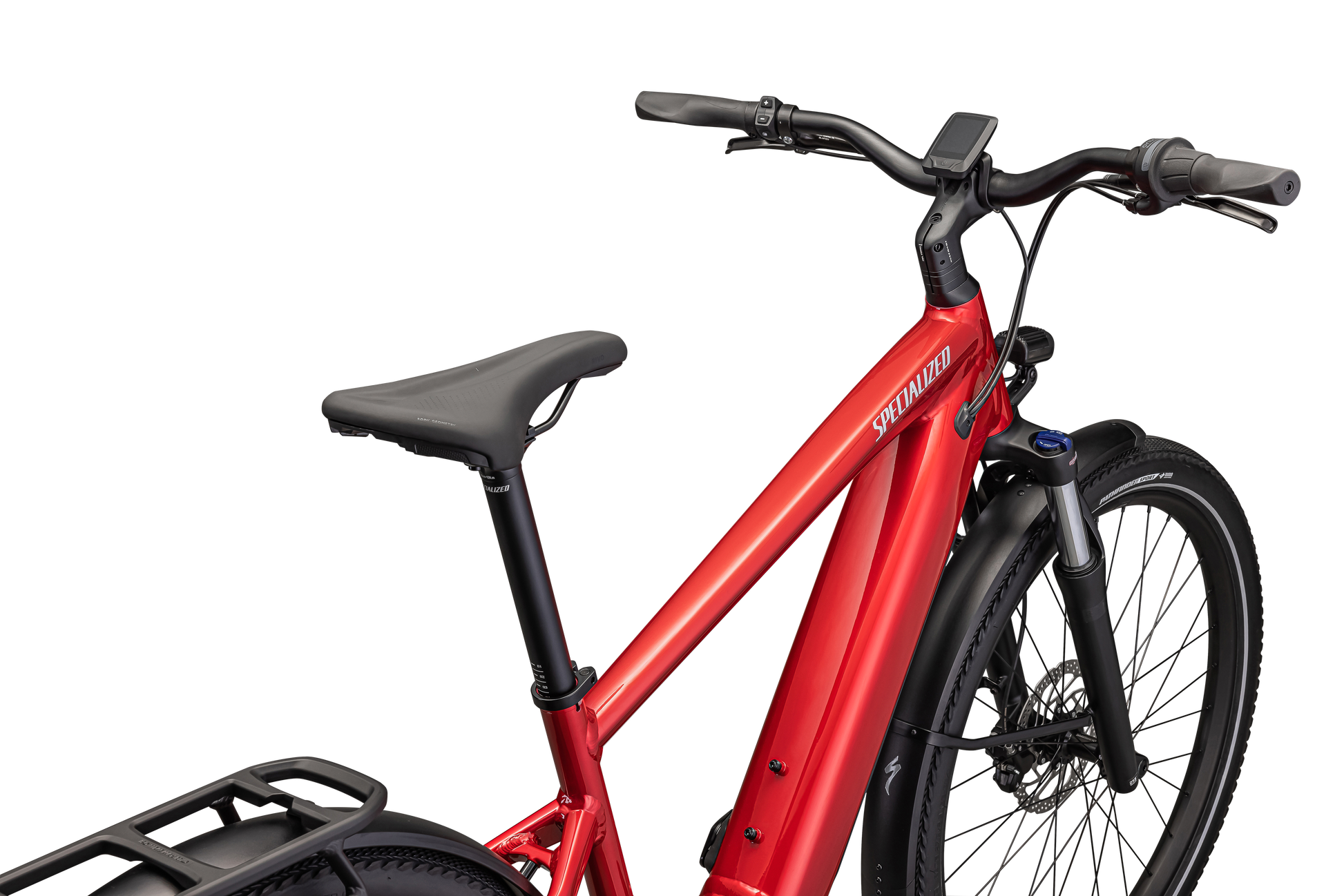 Consider Vado your high-performance transportation bike, getting you where you’re going with an unmatched combination of speed, reliability, and confidence. Whether you load it up with your stuff, or jump on and go, commute to work, or ride to the gym, Vado’s full power and huge range will get you from ‘point A’ to ‘point B’ ASAP. The Specialized Vado has everything you need for e-powered transport. It brings a balanced nature to the way it handles and superior levels of comfort, plus a motor range of up to 90 miles. This is a true class leader of its type. TURBO: The heart of the Vado is its Turbo technology, an advanced and integrated electric bike system that delivers an unequaled combination of power, natural feel, anti-theft functions, training tips, a full-function bike computer, 93 miles / 150 km of range, and more. POWERFUL: It’s you, just faster — it’s 4x You. The Turbo Full Power system senses the force you apply to the pedals and naturally quadruples it for an experience that makes getting up any hill or to any destination no sweat. Literally. COMFORTABLE AND CONFIDENT: Body position and handling are optimized to deliver unsurpassed riding comfort, confidence, and control. Powerful hydraulic disc brakes reign in your speed, while larger tires provide maximum traction for turning and stopping. SMOOTH: Stay comfortable in the saddle with an 80mm front suspension fork, and higher volume tires that smooths harsh bumps from points A to B. SECURE: Vado has anti-theft lock built right into the bike. Prevent would-be bike thieves by disabling the motor with a press of a button so no one can turn on the motor without your phone connected to the Specialized app or your personalized pin. The Vado’s battery locks in the bike or can be easily taken with you. And if anyone tries to move your bike an alarm will sound. Beat it, thieves. The speed limit at which the motor will stop supporting may vary significantly by region and is based on local requirements. It may also affect range: a higher speed limit may result in less range. Turbo Full Power 2.0E motor and 530Wh battery offer an unparalleled riding experience, providing a smooth, seamless, and shockingly quiet amplification of your efforts, up to 28 mph. The integrated controller responds to your pedal inputs resulting in intuitive amplification of your efforts with an incredibly natural feel.