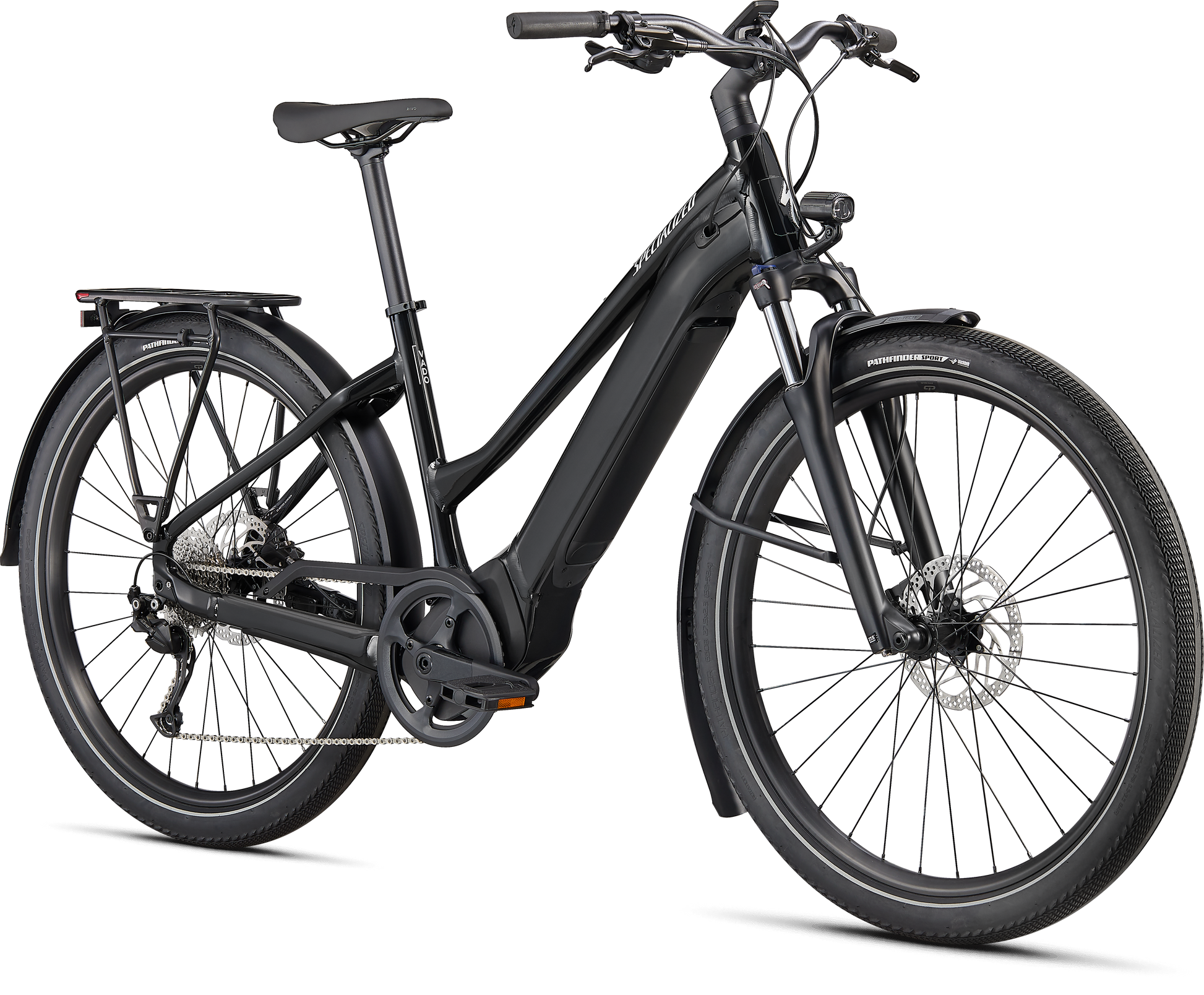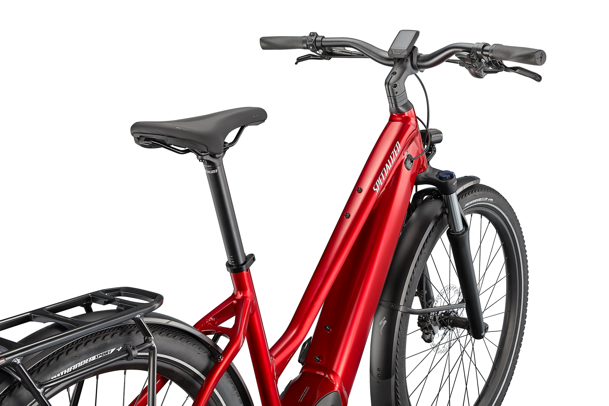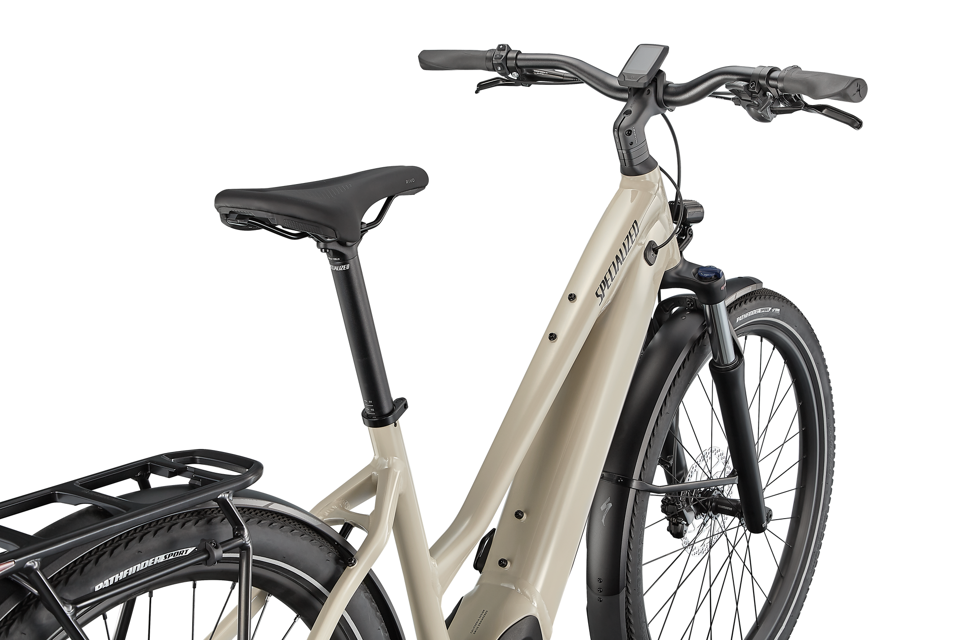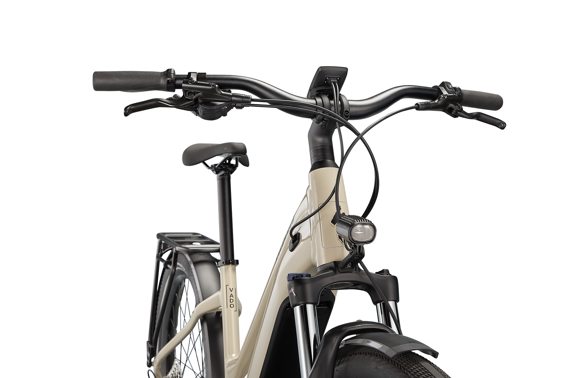 Consider Vado your high-performance transportation bike, getting you where you’re going with an unmatched combination of speed, reliability, and confidence. Whether you load it up with your stuff, or jump on and go, commute to work, or ride to the gym, Vado’s full power and huge range will get you from ‘point A’ to ‘point B’ ASAP. The Specialized Vado has everything you need for e-powered transport. It brings a balanced nature to the way it handles and superior levels of comfort, plus a motor range of up to 90 miles. This is a true class leader of its type. TURBO: The heart of the Vado is its Turbo technology, an advanced and integrated electric bike system that delivers an unequaled combination of power, natural feel, anti-theft functions, training tips, a full-function bike computer, 93 miles / 150 km of range, and more. POWERFUL: It’s you, just faster — it’s 4x You. The Turbo Full Power system senses the force you apply to the pedals and naturally quadruples it for an experience that makes getting up any hill or to any destination no sweat. Literally. COMFORTABLE AND CONFIDENT: Body position and handling are optimized to deliver unsurpassed riding comfort, confidence, and control. Powerful hydraulic disc brakes reign in your speed, while larger tires provide maximum traction for turning and stopping. SMOOTH: Stay comfortable in the saddle with an 80mm front suspension fork, and higher volume tires that smooths harsh bumps from points A to B. SECURE: Vado has anti-theft lock built right into the bike. Prevent would-be bike thieves by disabling the motor with a press of a button so no one can turn on the motor without your phone connected to the Specialized app or your personalized pin. The Vado’s battery locks in the bike or can be easily taken with you. And if anyone tries to move your bike an alarm will sound. Beat it, thieves. The speed limit at which the motor will stop supporting may vary significantly by region and is based on local requirements. It may also affect range: a higher speed limit may result in less range. Turbo Full Power 2.0E motor and 530Wh battery offer an unparalleled riding experience, providing a smooth, seamless, and shockingly quiet amplification of your efforts, up to 28 mph. The integrated controller responds to your pedal inputs resulting in intuitive amplification of your efforts with an incredibly natural feel.
