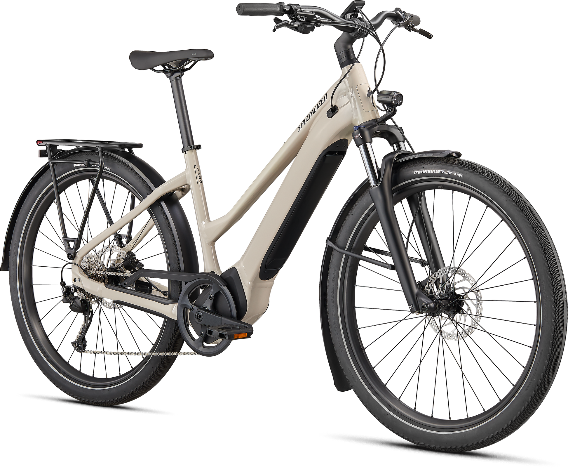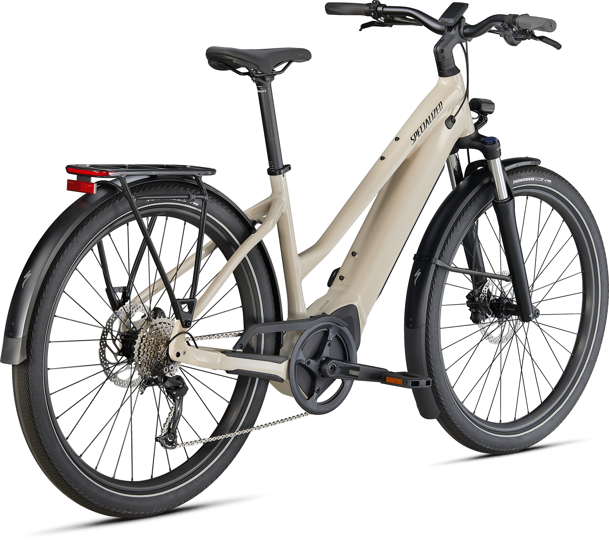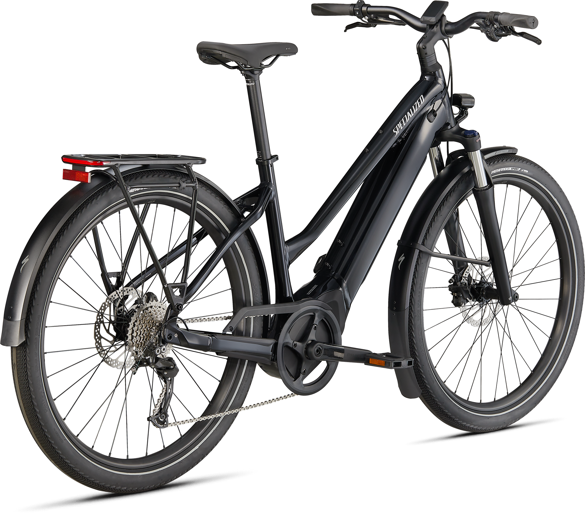 Consider Vado your high-performance transportation bike, getting you where you’re going with an unmatched combination of speed, reliability, and confidence. Whether you load it up with your stuff, or jump on and go, commute to work, or ride to the gym, Vado’s full power and huge range will get you from ‘point A’ to ‘point B’ ASAP. The Specialized Vado has everything you need for e-powered transport. It brings a balanced nature to the way it handles and superior levels of comfort, plus a motor range of up to 90 miles. This is a true class leader of its type. TURBO: The heart of the Vado is its Turbo technology, an advanced and integrated electric bike system that delivers an unequaled combination of power, natural feel, anti-theft functions, training tips, a full-function bike computer, 93 miles / 150 km of range, and more. POWERFUL: It’s you, just faster — it’s 4x You. The Turbo Full Power system senses the force you apply to the pedals and naturally quadruples it for an experience that makes getting up any hill or to any destination no sweat. Literally. COMFORTABLE AND CONFIDENT: Body position and handling are optimized to deliver unsurpassed riding comfort, confidence, and control. Powerful hydraulic disc brakes reign in your speed, while larger tires provide maximum traction for turning and stopping. SMOOTH: Stay comfortable in the saddle with an 80mm front suspension fork, and higher volume tires that smooths harsh bumps from points A to B. SECURE: Vado has anti-theft lock built right into the bike. Prevent would-be bike thieves by disabling the motor with a press of a button so no one can turn on the motor without your phone connected to the Specialized app or your personalized pin. The Vado’s battery locks in the bike or can be easily taken with you. And if anyone tries to move your bike an alarm will sound. Beat it, thieves. The speed limit at which the motor will stop supporting may vary significantly by region and is based on local requirements. It may also affect range: a higher speed limit may result in less range. Turbo Full Power 2.0E motor and 530Wh battery offer an unparalleled riding experience, providing a smooth, seamless, and shockingly quiet amplification of your efforts, up to 28 mph. The integrated controller responds to your pedal inputs resulting in intuitive amplification of your efforts with an incredibly natural feel.