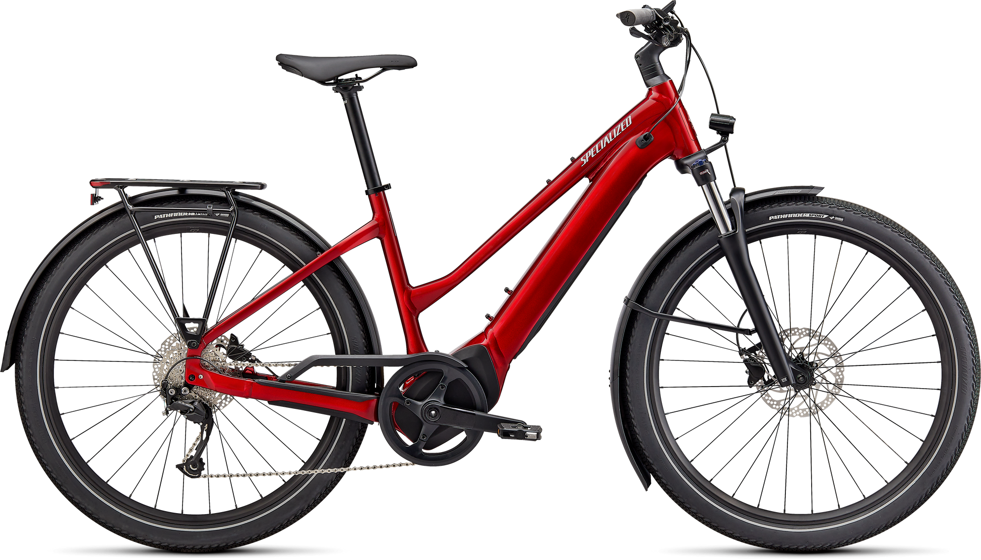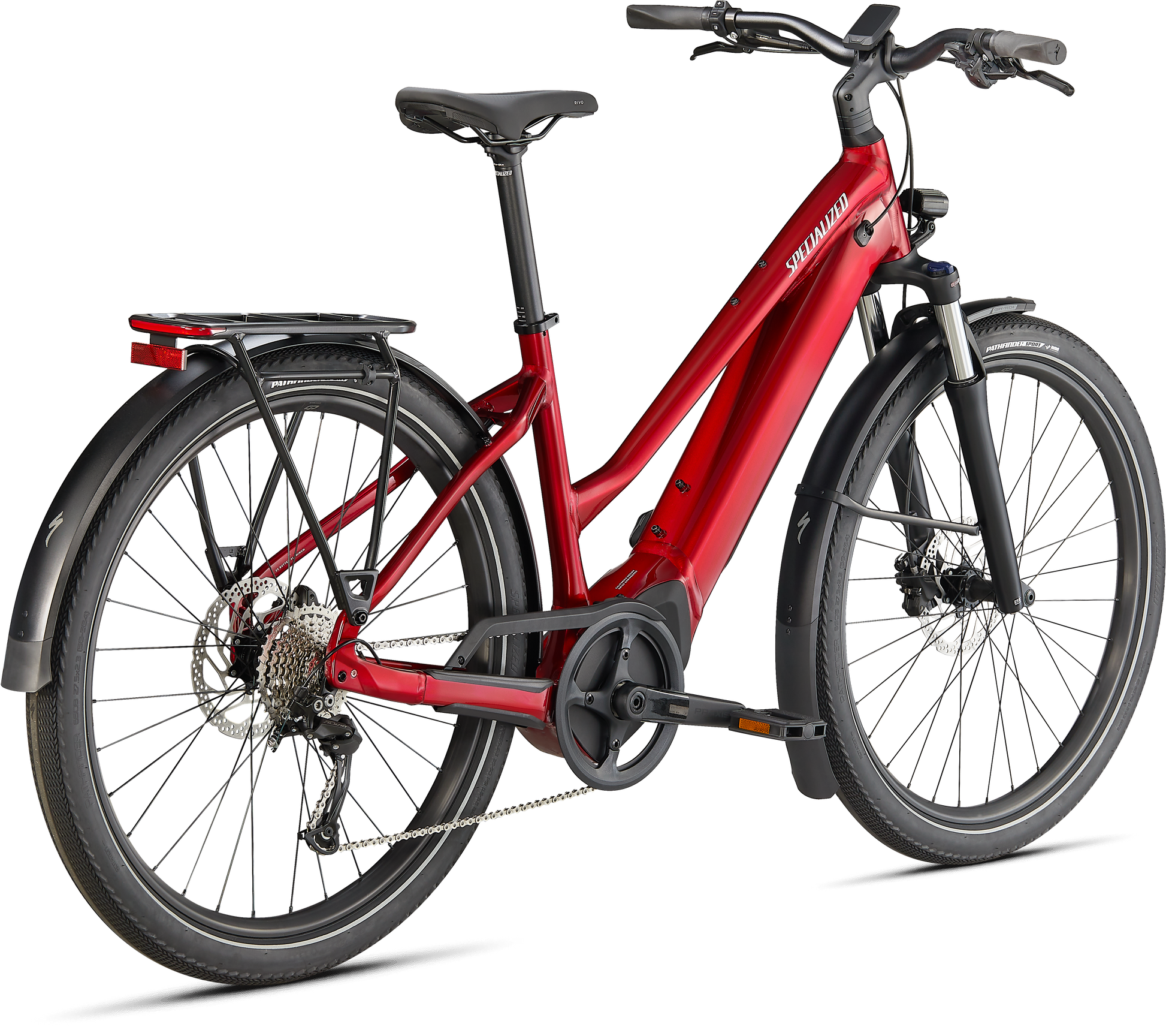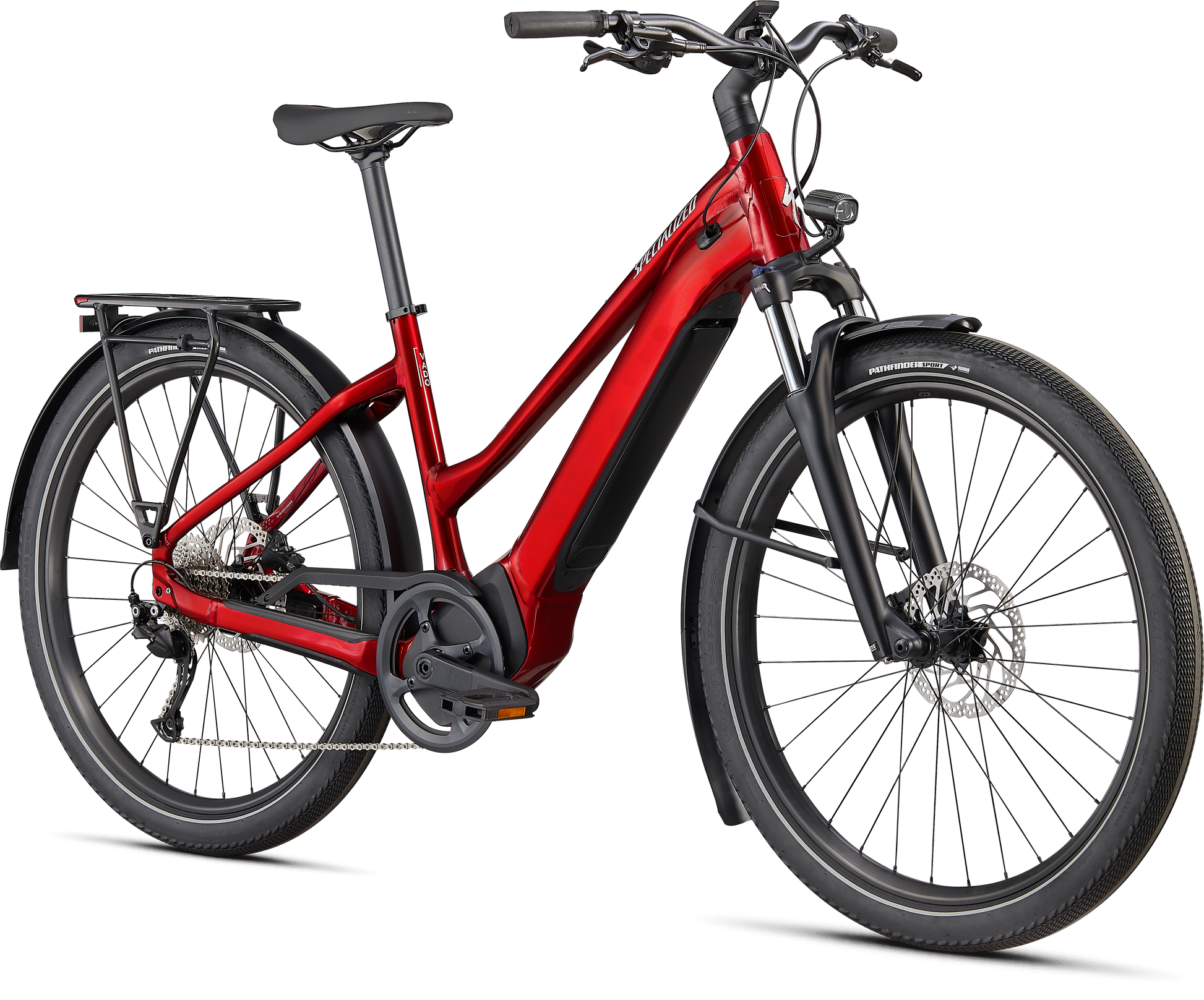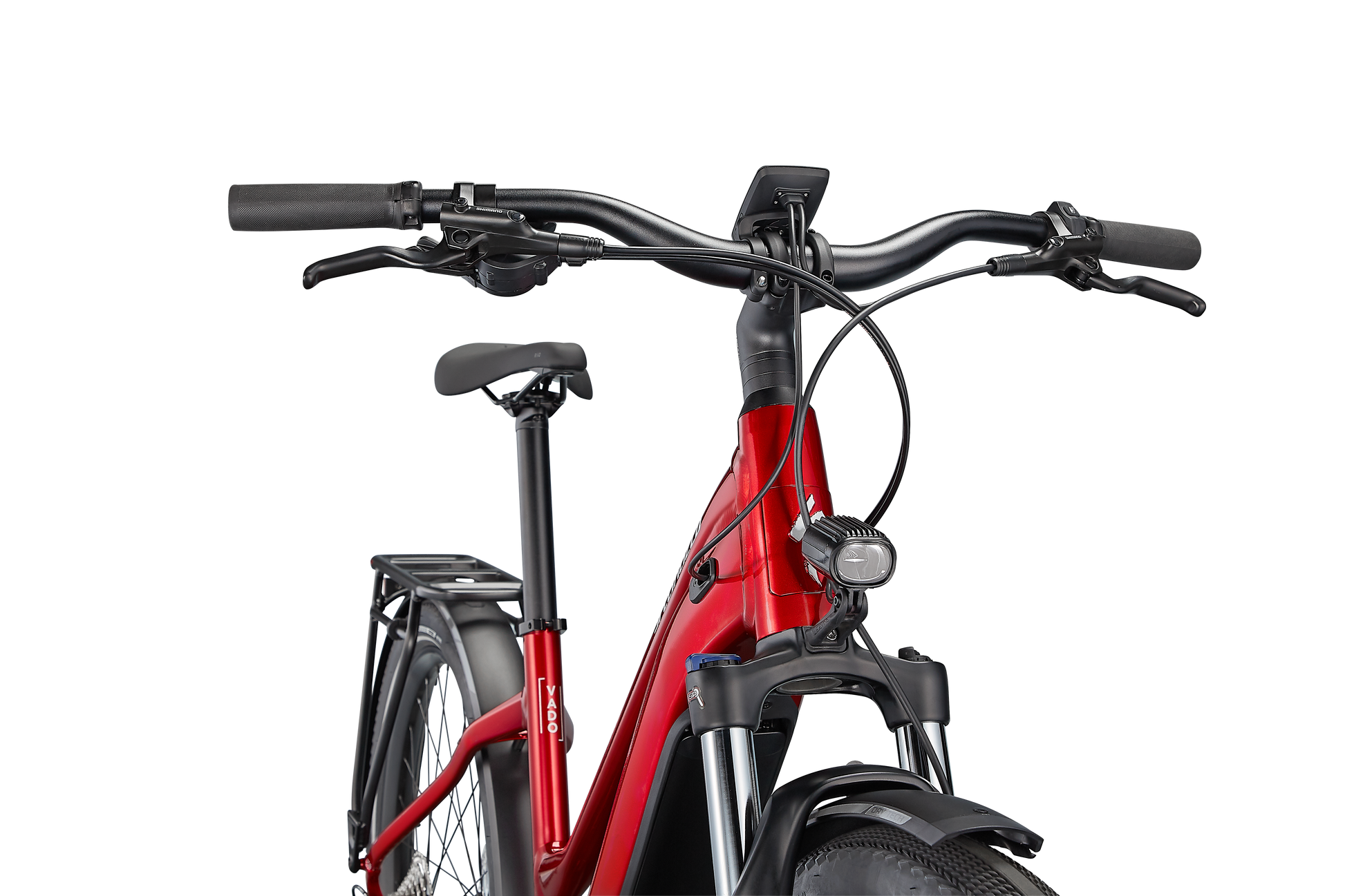 Consider Vado your high-performance transportation bike, getting you where you’re going with an unmatched combination of speed, reliability, and confidence. Whether you load it up with your stuff, or jump on and go, commute to work, or ride to the gym, Vado’s full power and huge range will get you from ‘point A’ to ‘point B’ ASAP. The Specialized Vado has everything you need for e-powered transport. It brings a balanced nature to the way it handles and superior levels of comfort, plus a motor range of up to 90 miles. This is a true class leader of its type. TURBO: The heart of the Vado is its Turbo technology, an advanced and integrated electric bike system that delivers an unequaled combination of power, natural feel, anti-theft functions, training tips, a full-function bike computer, 93 miles / 150 km of range, and more. POWERFUL: It’s you, just faster — it’s 4x You. The Turbo Full Power system senses the force you apply to the pedals and naturally quadruples it for an experience that makes getting up any hill or to any destination no sweat. Literally. COMFORTABLE AND CONFIDENT: Body position and handling are optimized to deliver unsurpassed riding comfort, confidence, and control. Powerful hydraulic disc brakes reign in your speed, while larger tires provide maximum traction for turning and stopping. SMOOTH: Stay comfortable in the saddle with an 80mm front suspension fork, and higher volume tires that smooths harsh bumps from points A to B. SECURE: Vado has anti-theft lock built right into the bike. Prevent would-be bike thieves by disabling the motor with a press of a button so no one can turn on the motor without your phone connected to the Specialized app or your personalized pin. The Vado’s battery locks in the bike or can be easily taken with you. And if anyone tries to move your bike an alarm will sound. Beat it, thieves. The speed limit at which the motor will stop supporting may vary significantly by region and is based on local requirements. It may also affect range: a higher speed limit may result in less range. Turbo Full Power 2.0E motor and 530Wh battery offer an unparalleled riding experience, providing a smooth, seamless, and shockingly quiet amplification of your efforts, up to 28 mph. The integrated controller responds to your pedal inputs resulting in intuitive amplification of your efforts with an incredibly natural feel.